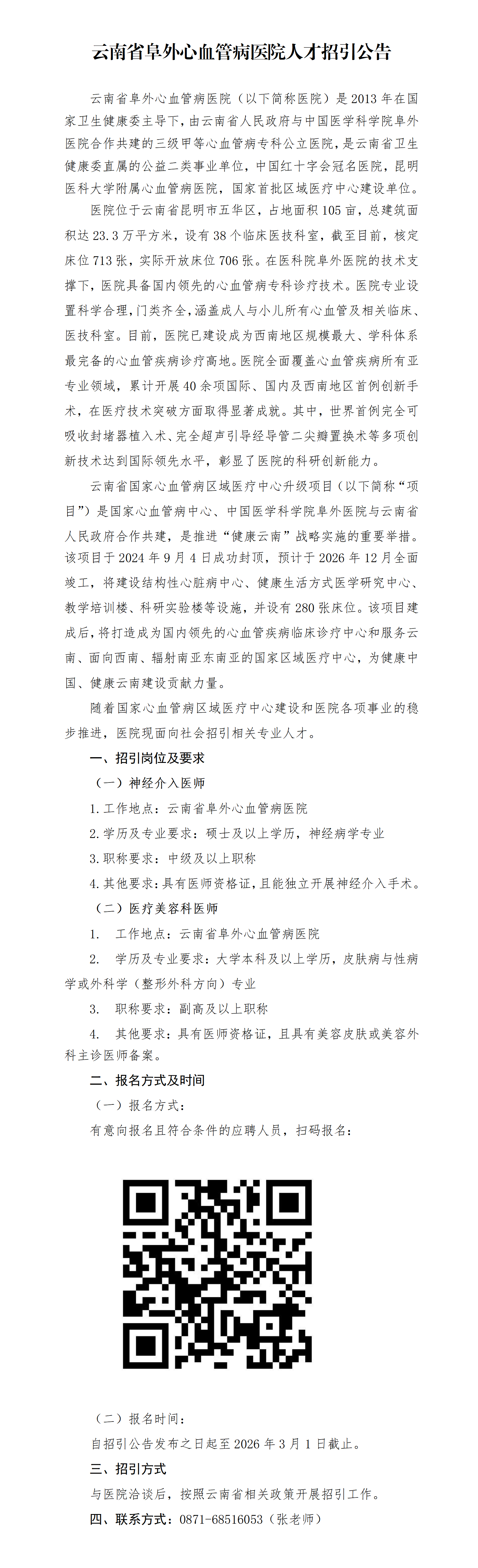 云南省阜外心血管病医院人才招引公告
